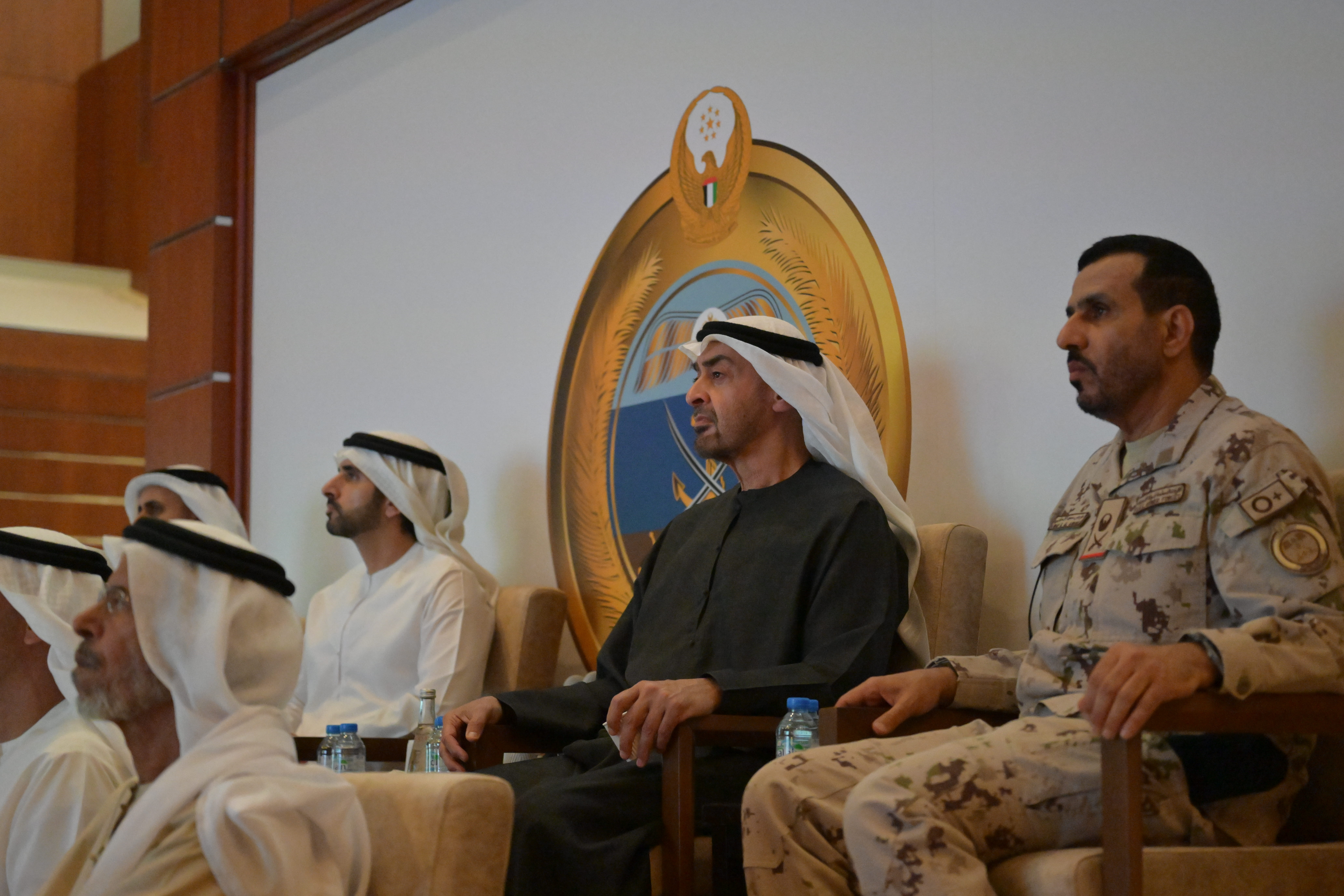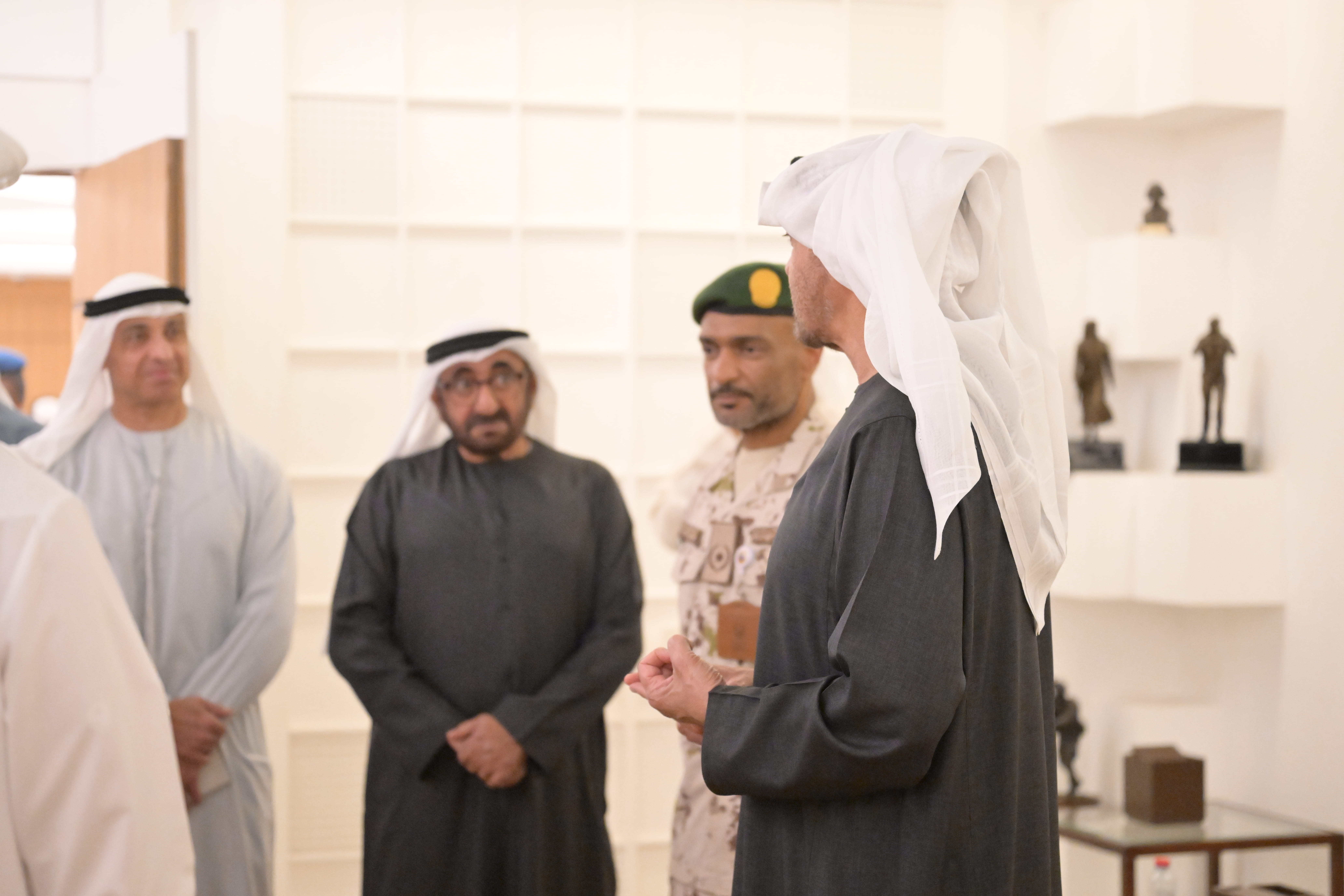 His Highness was accompanied during the visit by H.H. Sheikh Hamdan bin Mohammed bin Rashid Al Maktoum, Crown Prince of Dubai, Deputy Prime Minister, Minister of Defence; H.H. Sheikh Hazza bin Zayed Al Nahyan, Ruler’s Representative in Al Ain Region; H.H. Sheikh Theyab bin Mohamed bin Zayed Al Nahyan, Deputy Chairman of the Presidential Court for Development and Fallen Heroes' Affairs; Mohamed Mubarak Fadhel Al Mazrouei, Minister of State for Defence Affairs; Lieutenant General Ibrahim Nasser Al Alawi, Under-Secretary of the Ministry of Defence; Hamad Mohammed Thani Al Rumaithi, Military Affairs Adviser to the UAE President; Khaldoon Khalifa Al Mubarak, Chairman of the Executive Affairs Authority; Faisal Abdulaziz Mohammed Al Bannai, Adviser to the UAE President for Strategic Research and Advanced Technology Affairs; and a number of senior officers of the Ministry of Defence..
