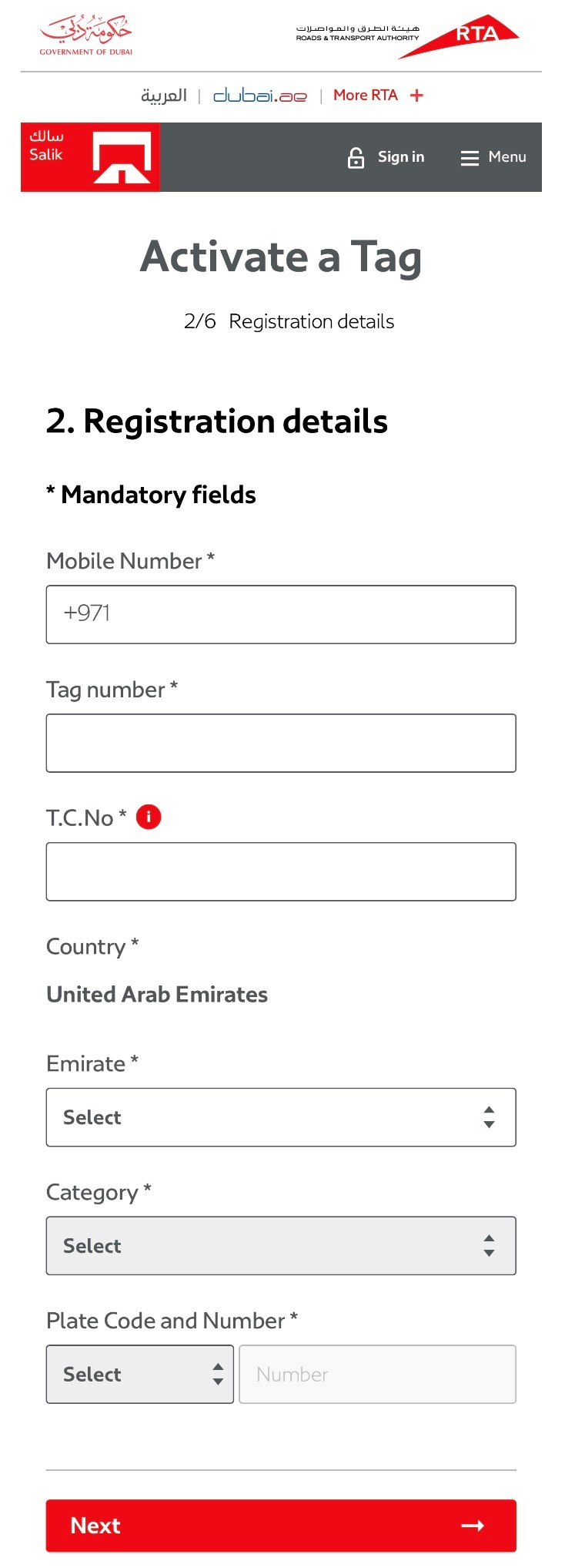 Once clients buy a Salik Tag through authorised dealers, or Salik website/app, simple details need to be entered such as the number of Salik Tag number, traffic file, mobile phone and others. The client will then be informed about the successful completion of the registration process.